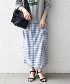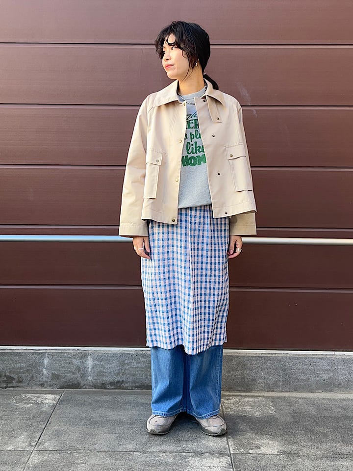 素材感・着心地:春らしい色合いのスカート。薄地のためレイヤードスタイルなどで長いシーズン着用しやすいです。