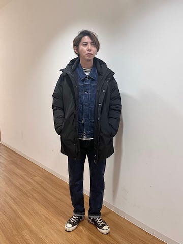 年齢:20代/ 身長:171p/ ウエスト:72p/ 体重:57s/ 体型:やせ型/ 肩幅:普通/ 普段サイズ:ML