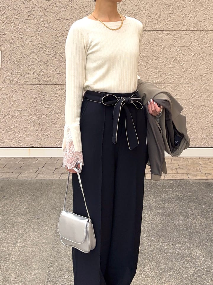 〔ONE SIZE〕SHIPS Colors:〈手洗い可能〉レース カット オフ ワイド リブ ニット