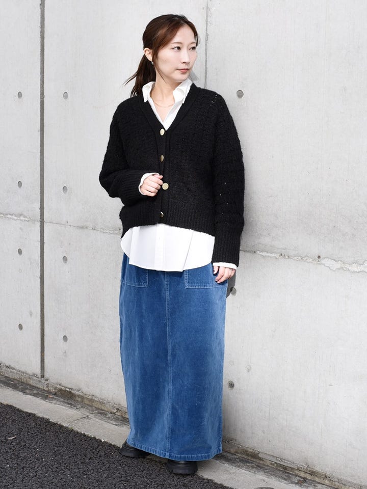 〔38〕quaranciel:〈洗濯機可能〉コットン ベロア インディゴ Iライン ストレート スカート