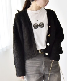〔ONE SIZE〕quaranciel: 透かし編み Vネック コンパクト ドルマンニットカーディガン