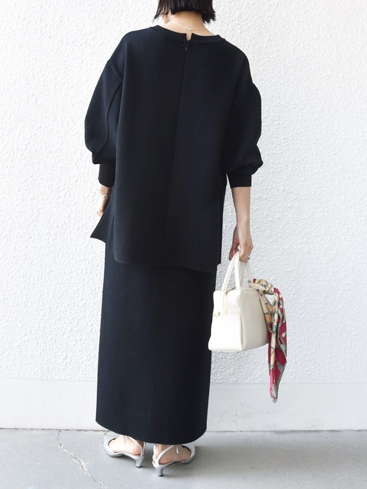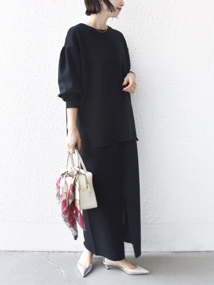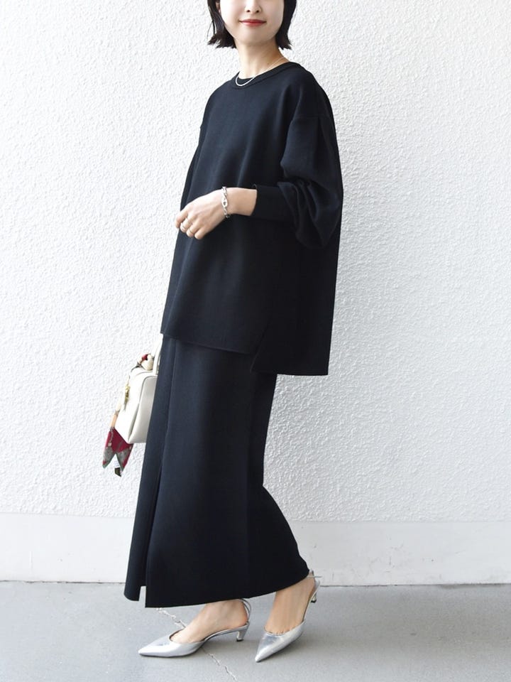 着心地:脇に縫い目がないので、スリットを前や後ろ、好きな位置に持ってこられるのが◎ジャージー素材で柔らかく足さばきがいいです。