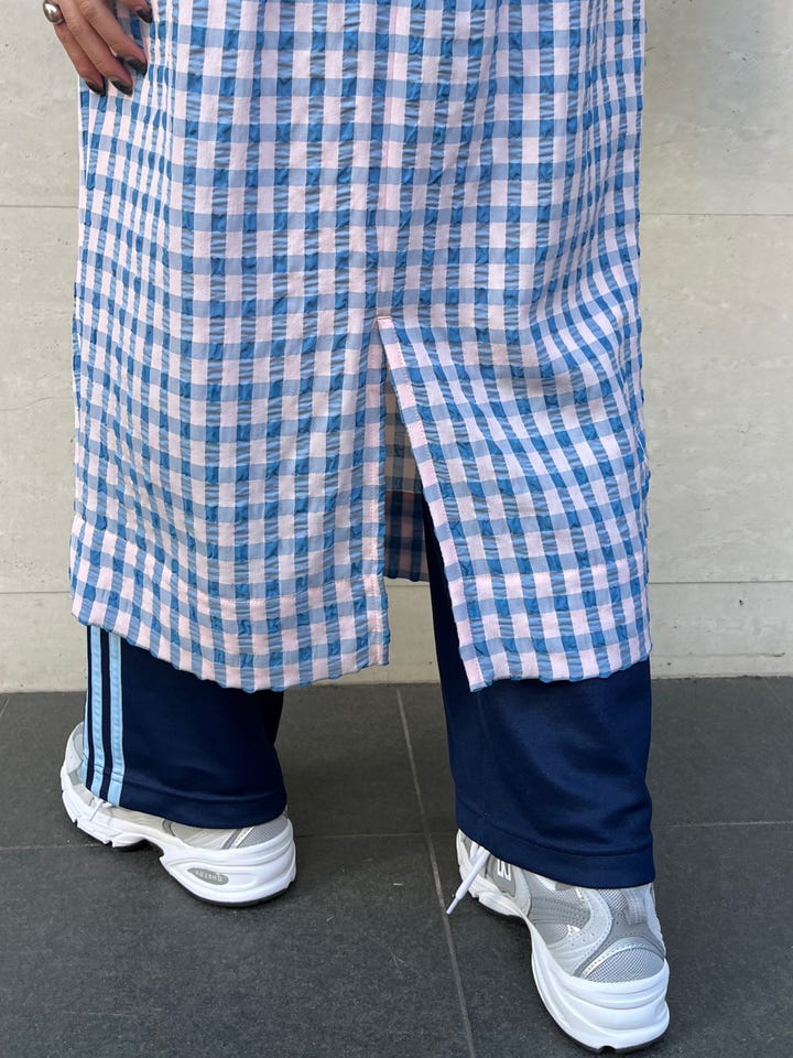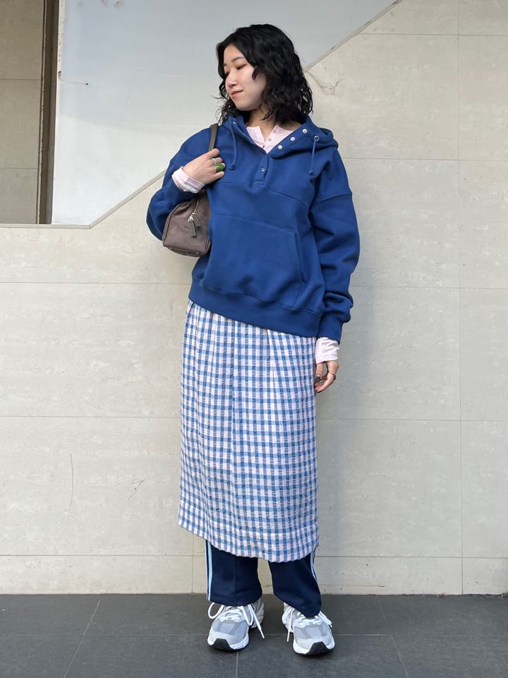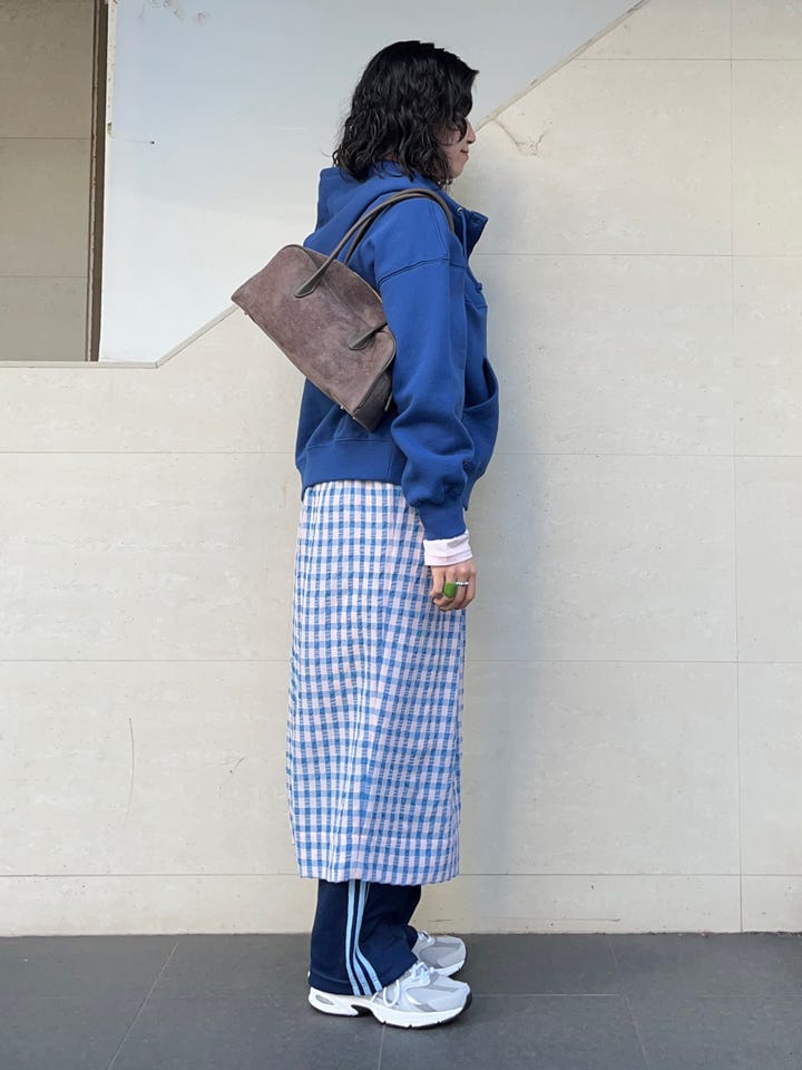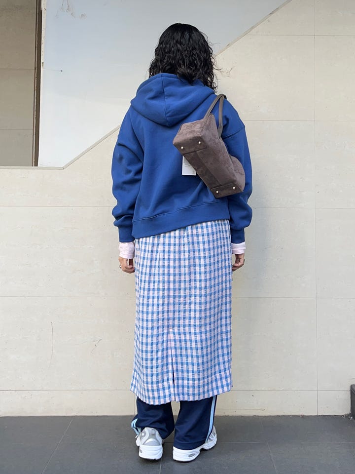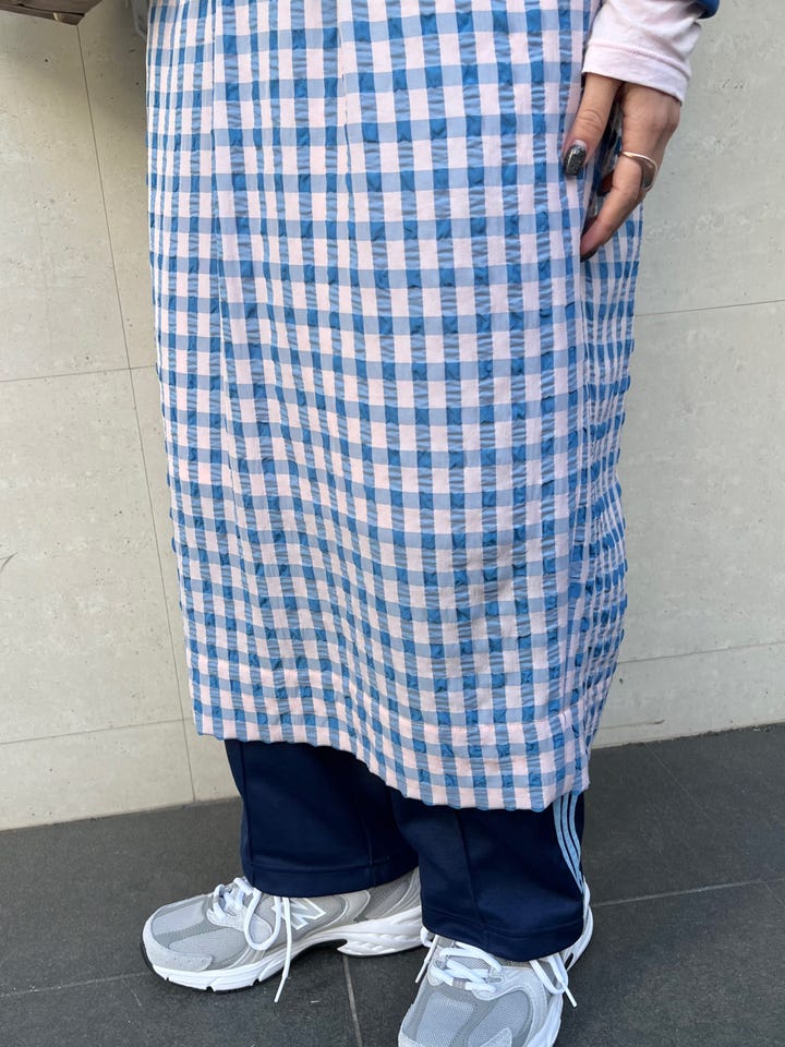 タイトスカートですが、レイヤードできるくらいのゆとりはありました。いつも通りのサイズでジャストです。スリットが入っていたり、裏地がしっかりついているのも◎ とても春らしいギンガムチェックと配色で、スウェットやデニムジャケットでカジュアルに合わせるのがおすすめです!