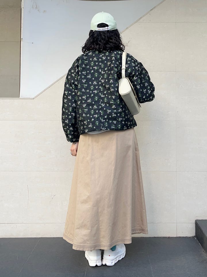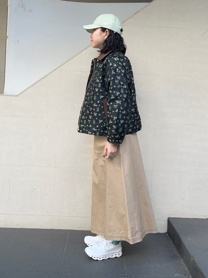 割とコンパクトなサイズ感で、袖もやや短めです。フレア、ティアードのスカートや、ワイドパンツなどと合わせるとバランスが取りやすいです。生地もちょうど良く、春秋にぴったりの軽アウターです。