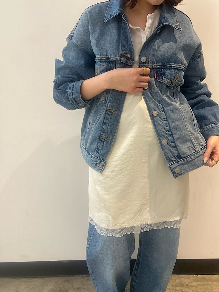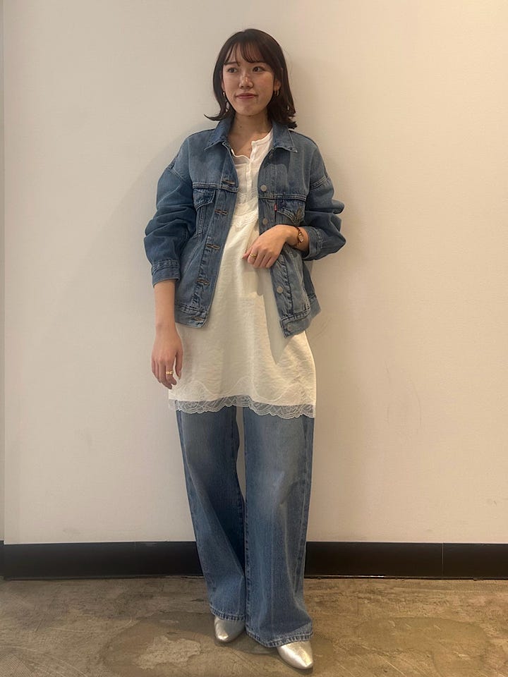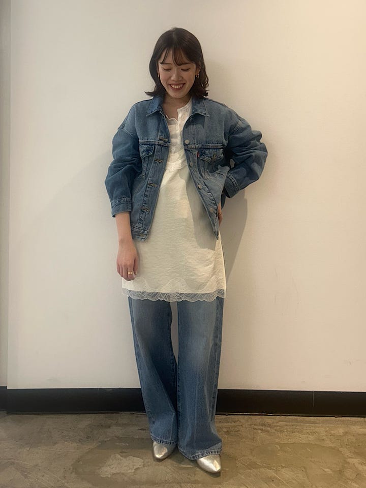 ふんわりとボリュームのあるデザインが女性らしく、デニムが苦手な方でも取り入れやすいアイテムです。