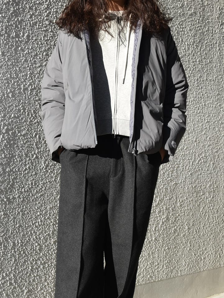 サイズ感:程よいゆとりがございます。中綿入りも相まってとても軽く着用いただけます。