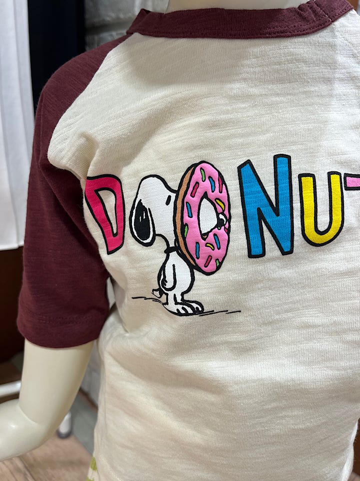ドーナツに頭を突っ込んだスヌーピーは、shipsオリジナルのデザインとなっています。