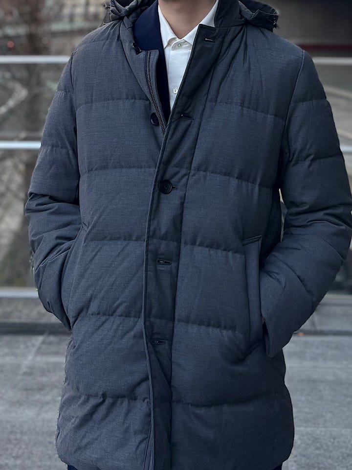 ジャケット着用した上からでも羽織れるので仕事で着ていただけます。