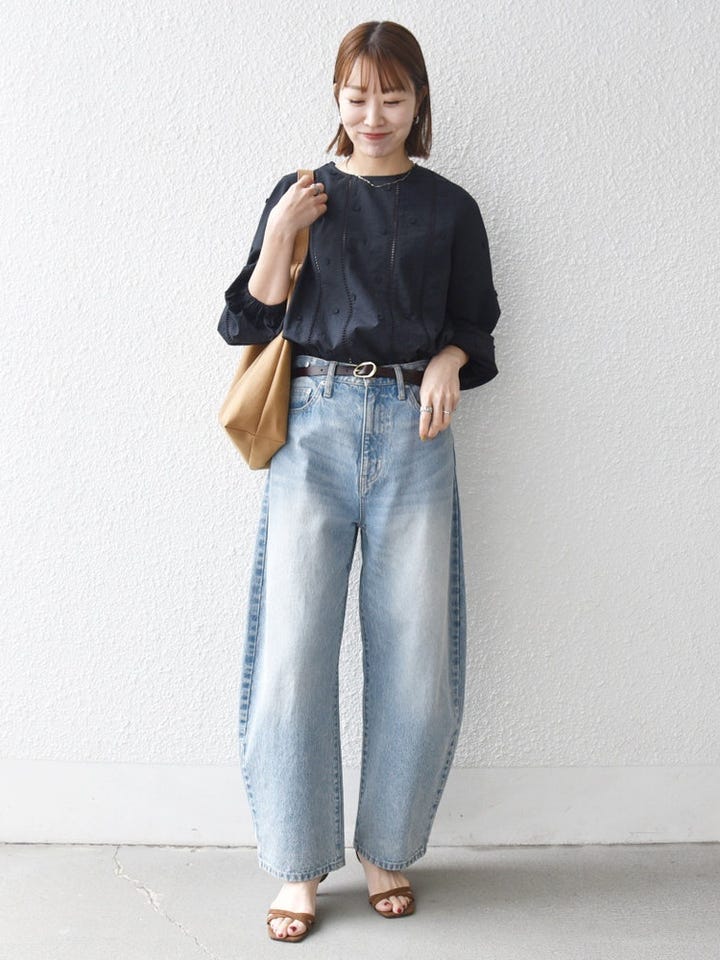 着用アイテム:フラワー モチーフ ハシゴレース クルーネック ブラウス ブラック