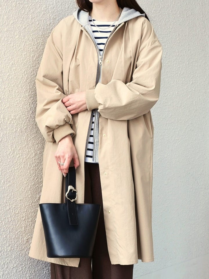 着用アイテム:ツイル ノーカラー タック コート