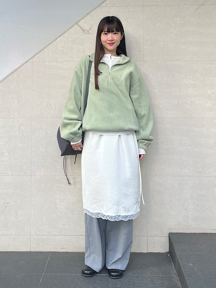 〔ONE SIZE〕〈洗濯機可能〉フリース 裾 ドロスト ハーフ ジップ プルオーバー