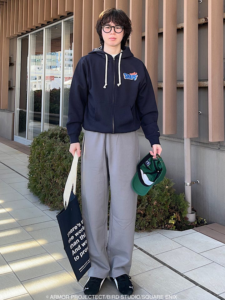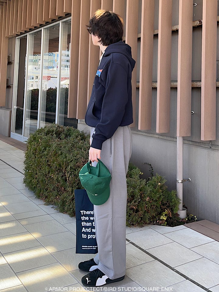 ルーズフィットのスウェットやスラックス、デニムとの相性が良いです◎