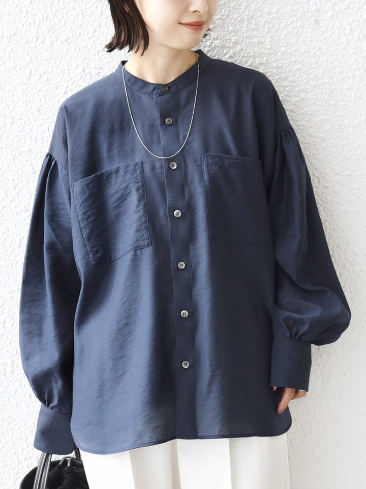 〔ONE SIZE〕〈手洗い可能〉シアー タンブラー ポケット デザイン シャツ