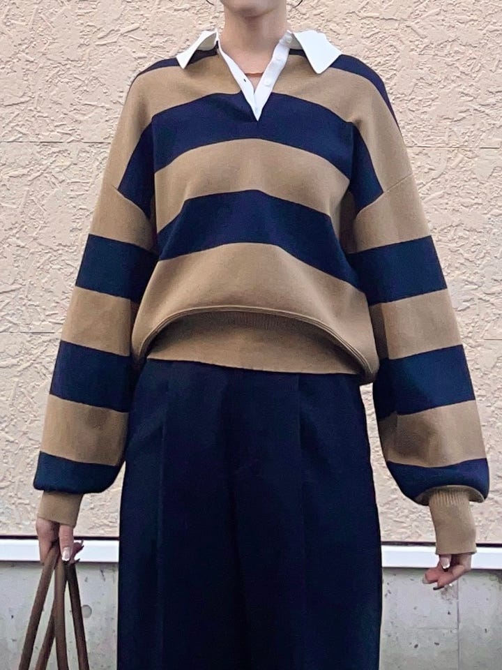 袖は長めでボリューム感がある。丈は短めなので、スカートやワイドパンツと合わせるとバランスが取りやすい。