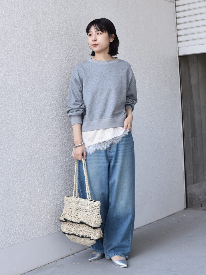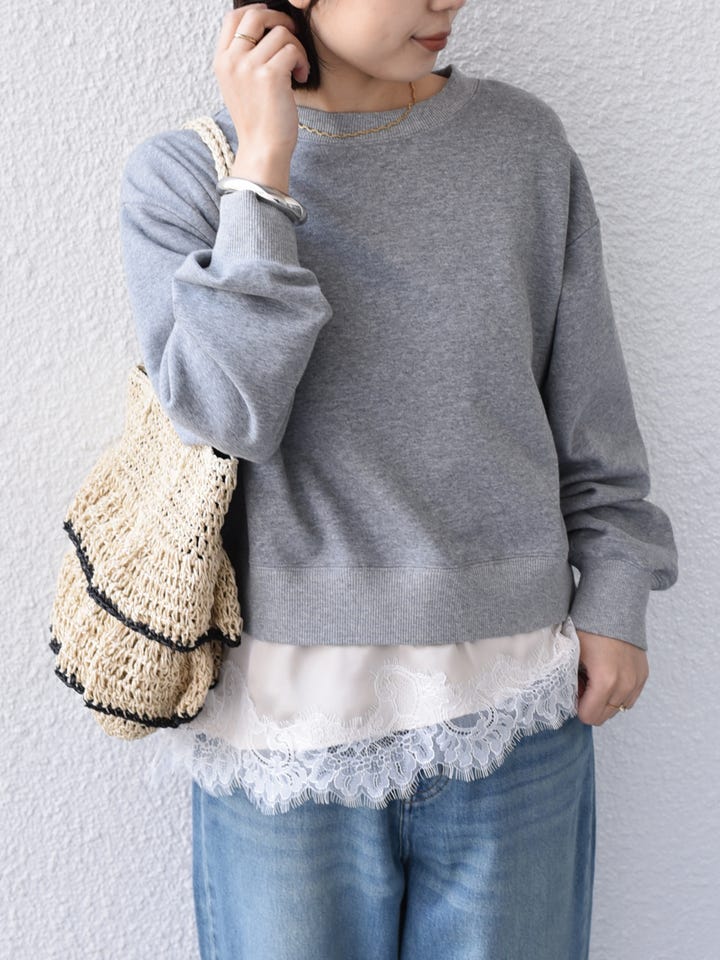 着用アイテム:〈手洗い可能〉レース レイヤード 裏毛 トップス◆