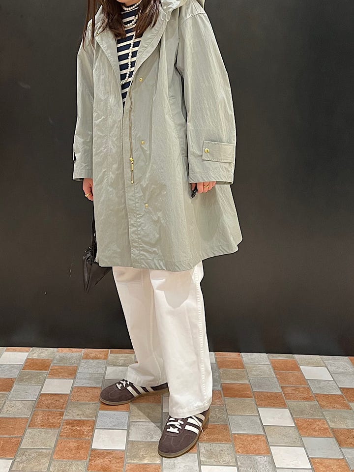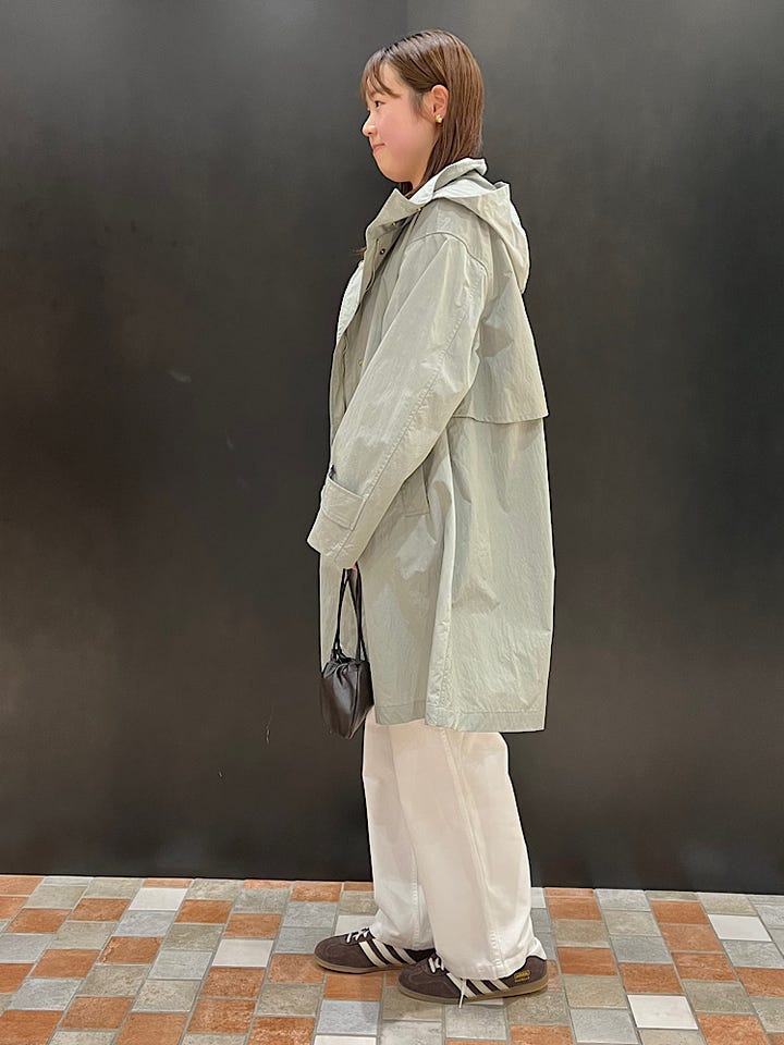 とても軽く、これからのアウターとしておすすめです◎季節の変わり目に使えます!フード付きで、撥水加工なので雨の日でも役立ちます!広がっていてトレンチコートのような形でカジュアルにも綺麗めにも組み合わせられます^_^