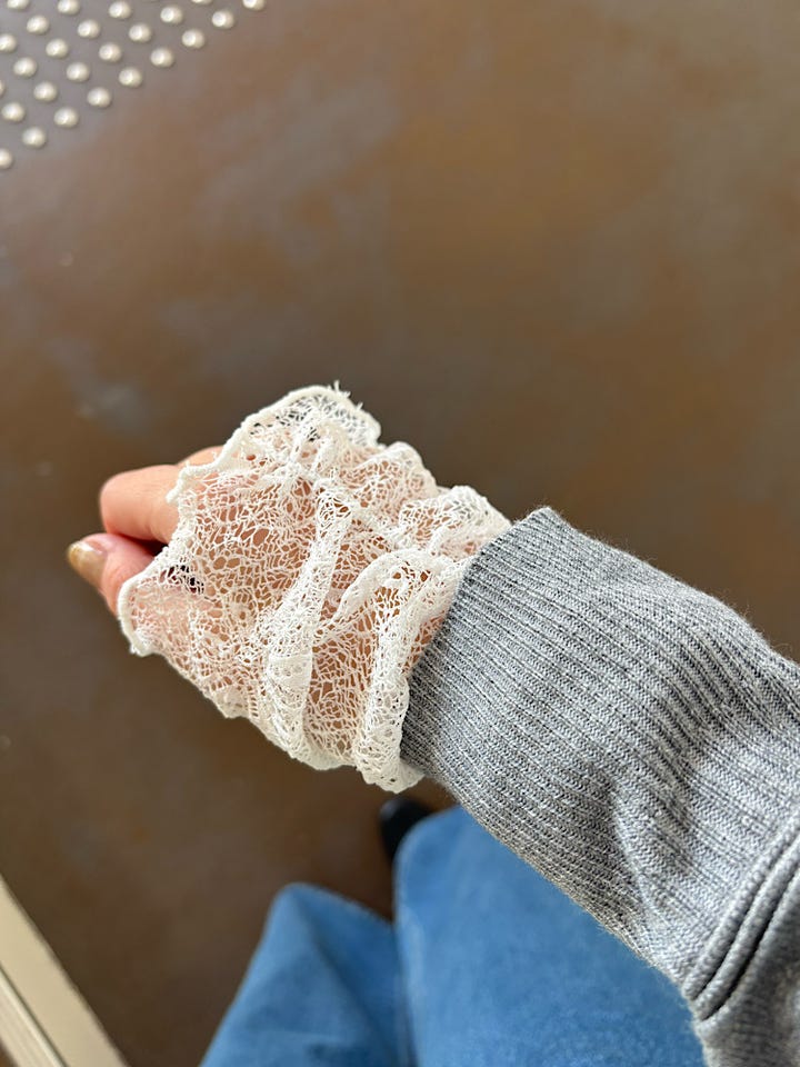 素材感/着心地:袖口のレースがポイントのトップスです。一枚着でもインナーとしても着用できます。