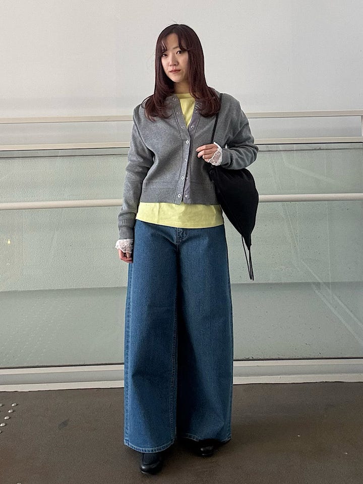 素材感/着心地:ハイウエストで腰回りはスッキリとヒップから裾周りにかけて大きめシルエットのワイドパンツ。ストレッチが効いていて動きやすいです。