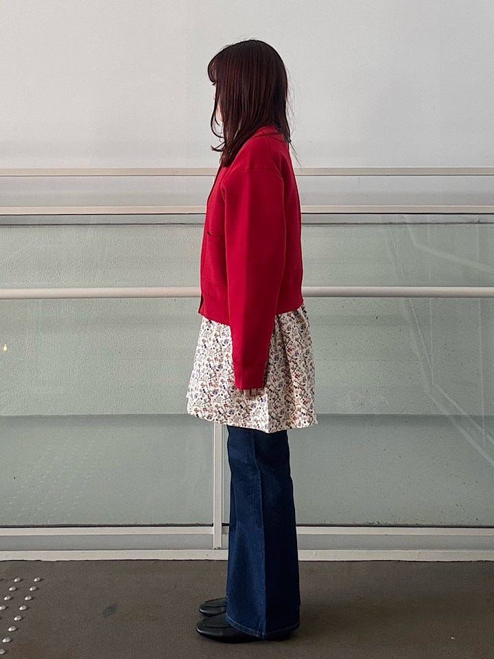 素材感/着心地:ハリ感があり軽めの生地感です。メタルボタンがさりげないアクセントになります。