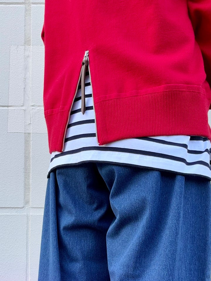 後ろのファスナーがポイントで、下にロンTを重ねてレイヤードをしていただくのもおすすめです♪