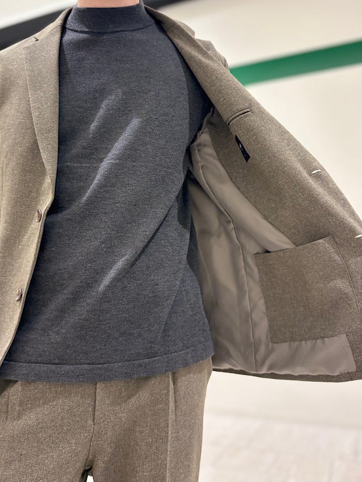 ネックがやや高めなので、ジャケット等のインナーにした時に直接首に当たらなくなるのでおすすめです。