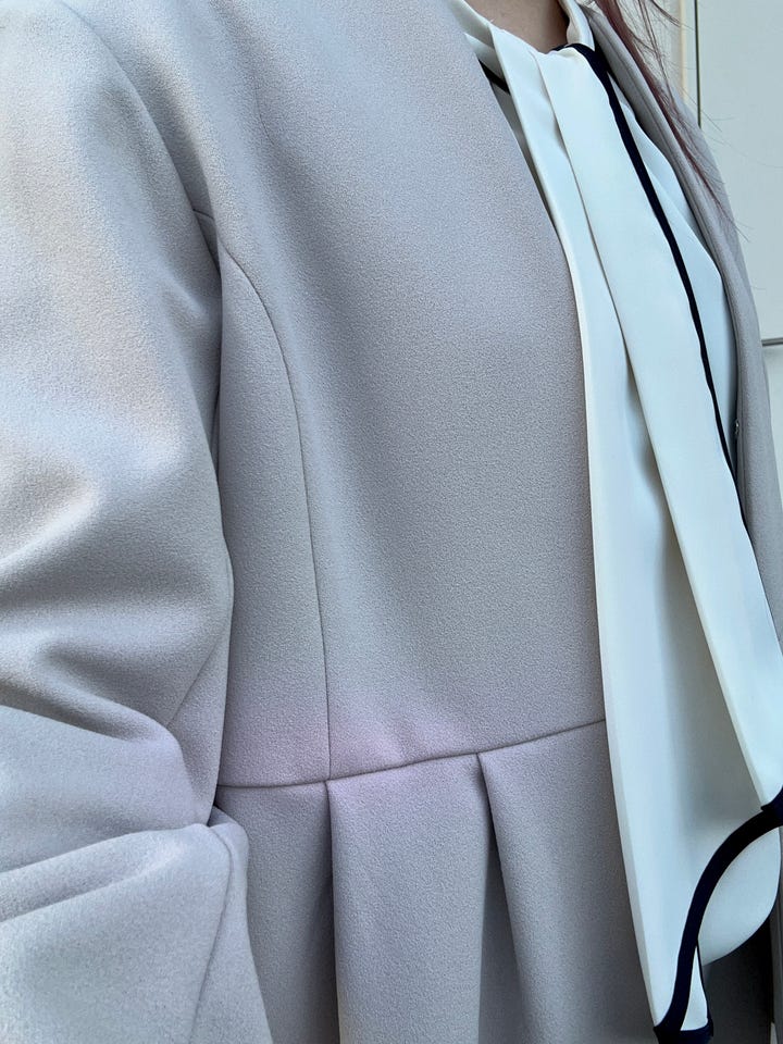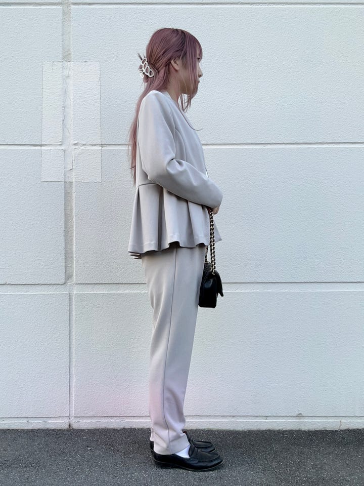 ウエストの高い位置にペプラムが入っているので、スタイルアップします♪