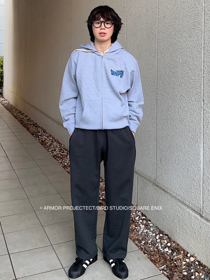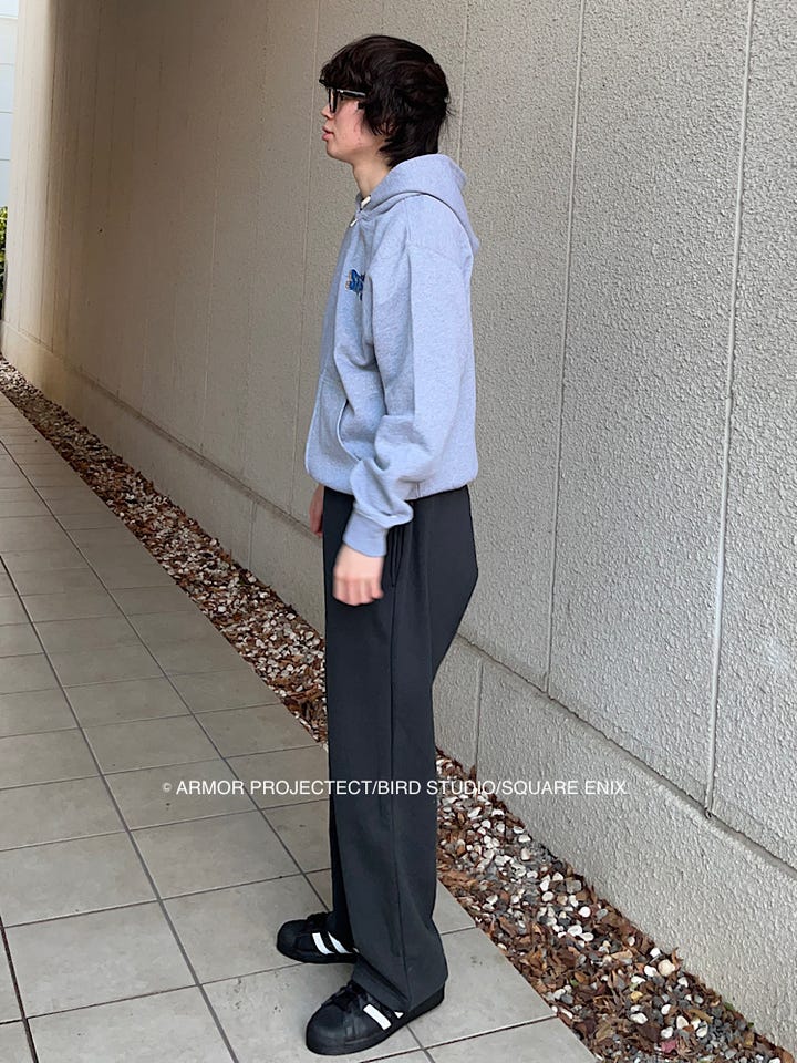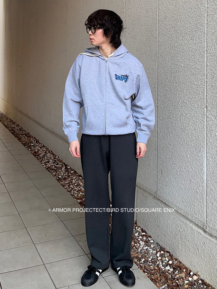 ルーズフィットのスウェットやスラックス、デニムとの相性が良いです◎