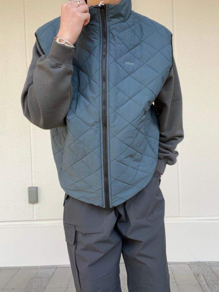 キルティング刺繍がされていてシンプルなのに、可愛さが出る羽織るだけでオシャレなベストです。これからの時期にとても重宝する1着です。