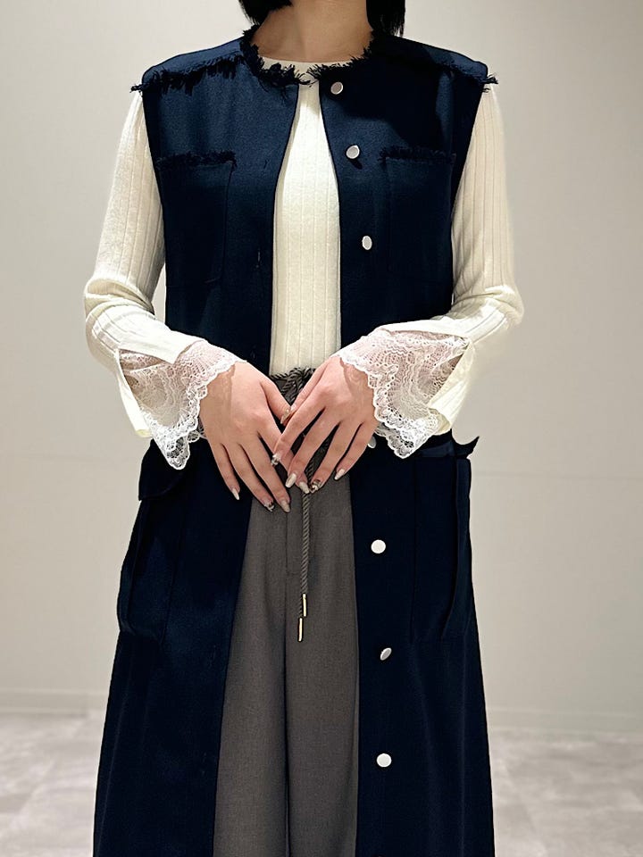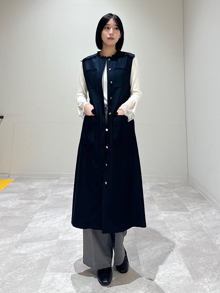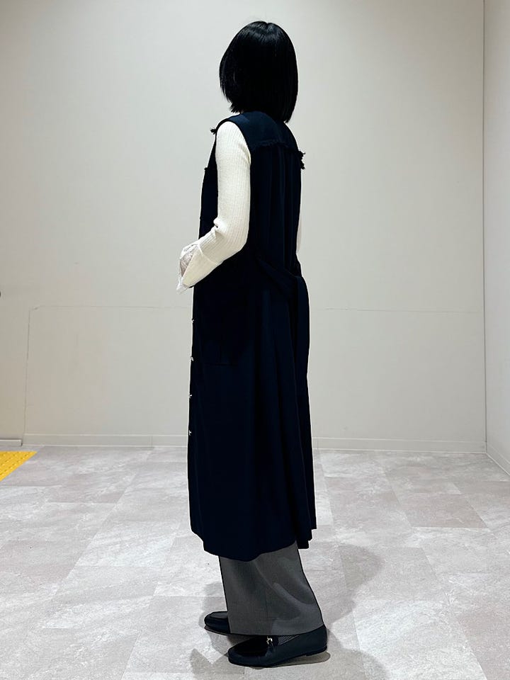 ワンピースとして着るのも、ジレとして着るのも◎ 2way で着回ししやすいのと、季節問わず着られます。