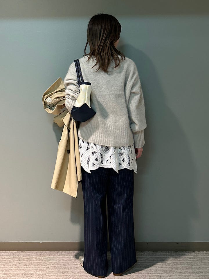 首周り程よくゆとりがあるので、タートルネックなどと合わせても◎です。