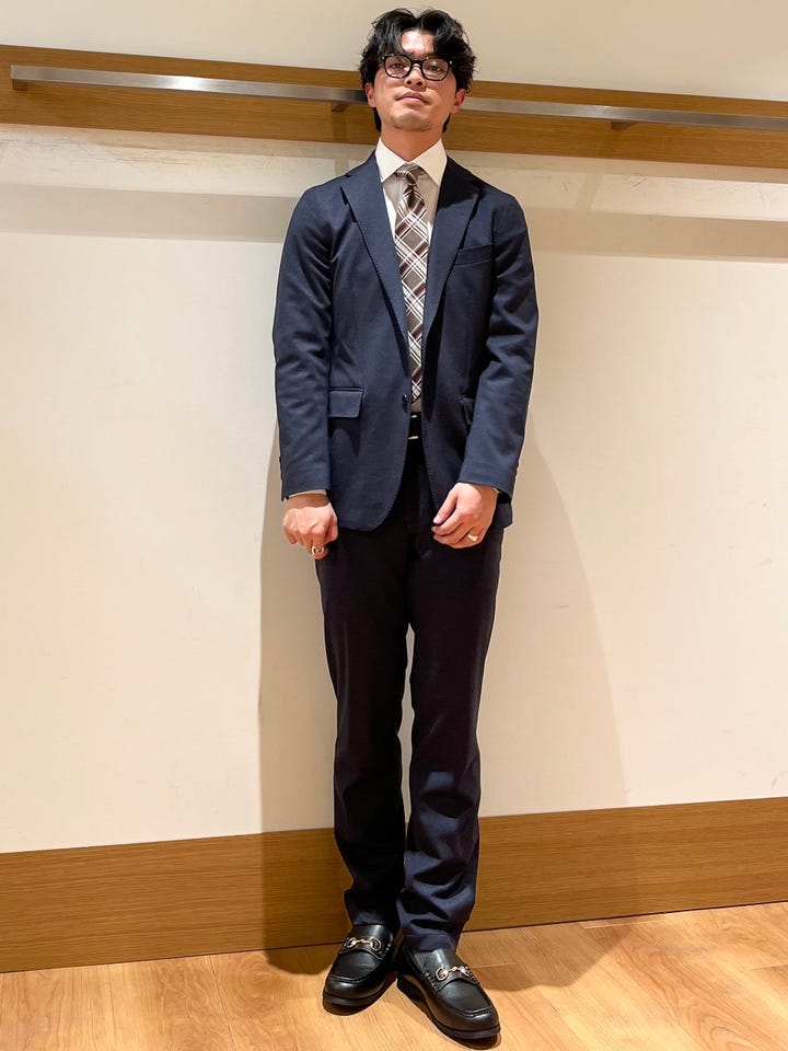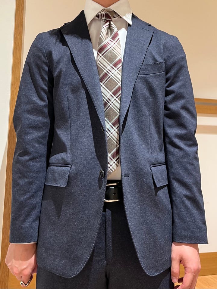 標準的なスーツに似たフィット感。細くも太くもなく、安心感がある