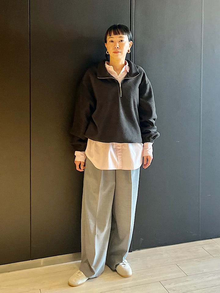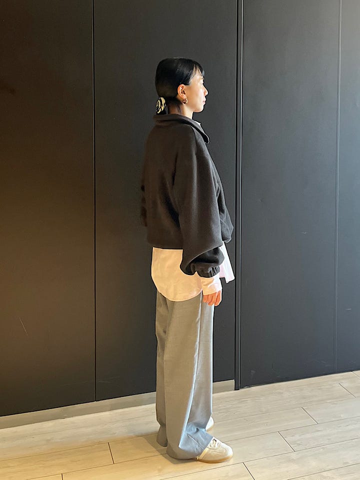 〔ONE SIZE〕〈洗濯機可能〉フリース 裾 ドロスト ハーフ ジップ プルオーバー