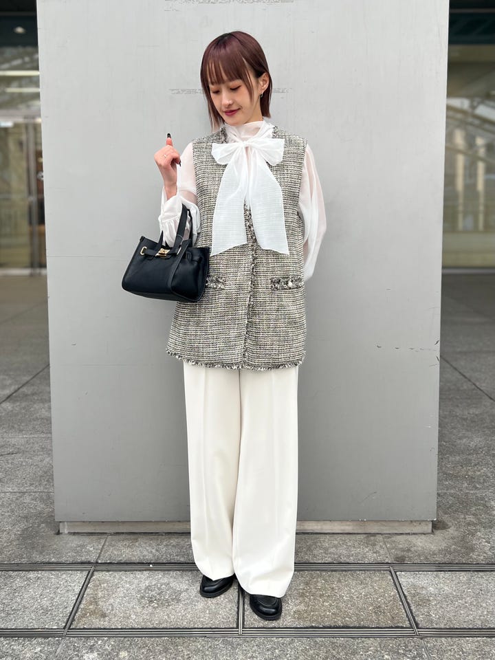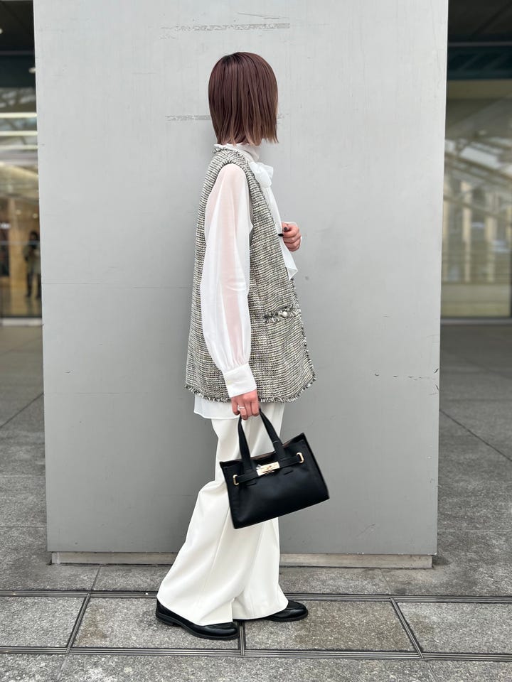 素材感:ツイード生地の凹凸のある素材感で立体感ある一枚◎ラメ糸も入っており、上品なデザインとなっています。