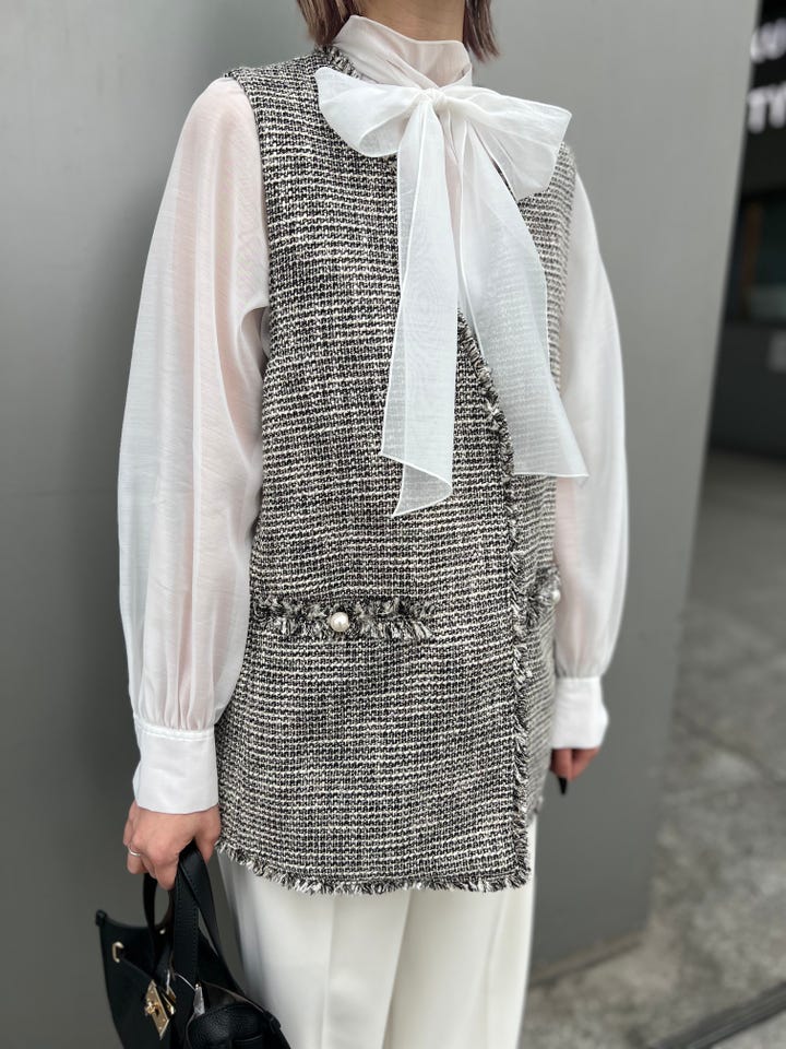 〔ONE SIZE〕トライスピン 杢 ツイード カラーレス ジレ(セレモニー対応可)