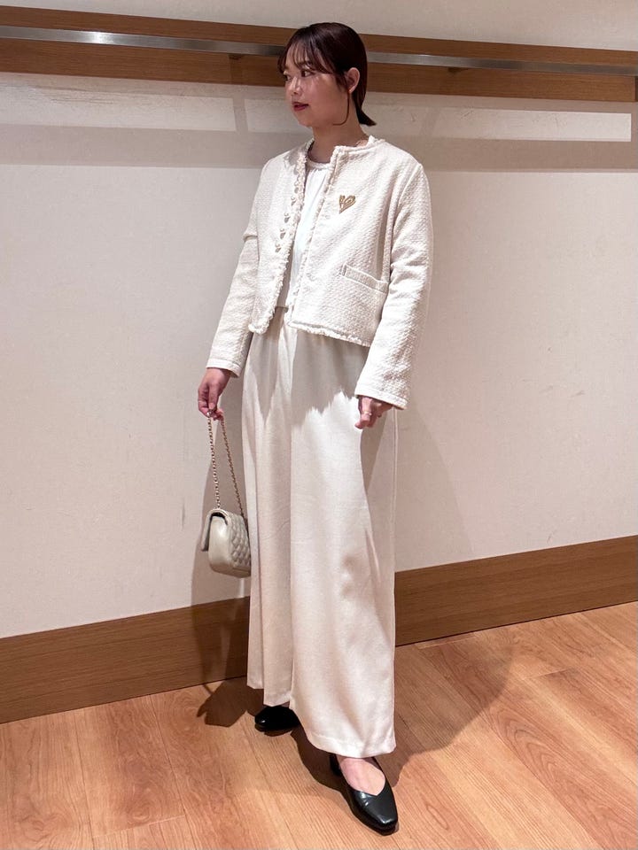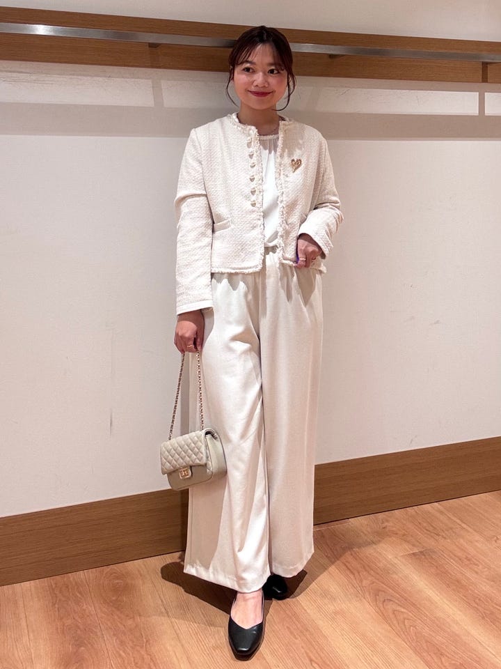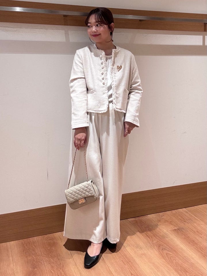 セレモニーやイベントごとにもピッタリなノーカラージャケット。パールが華やかにしてくれます◎