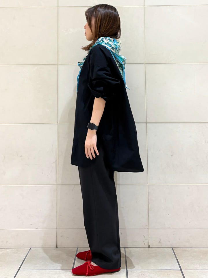 さらっとした素材感で、春コーデにおすすめなパンツです。上品で綺麗な印象があり、お仕事でも履いていただけますが、普段使いもしやすいです。