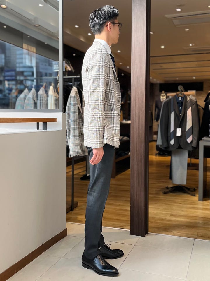 ●【着用アイテム】TAGLIATORE: コットン メッシュ グレンチェック ジャケット