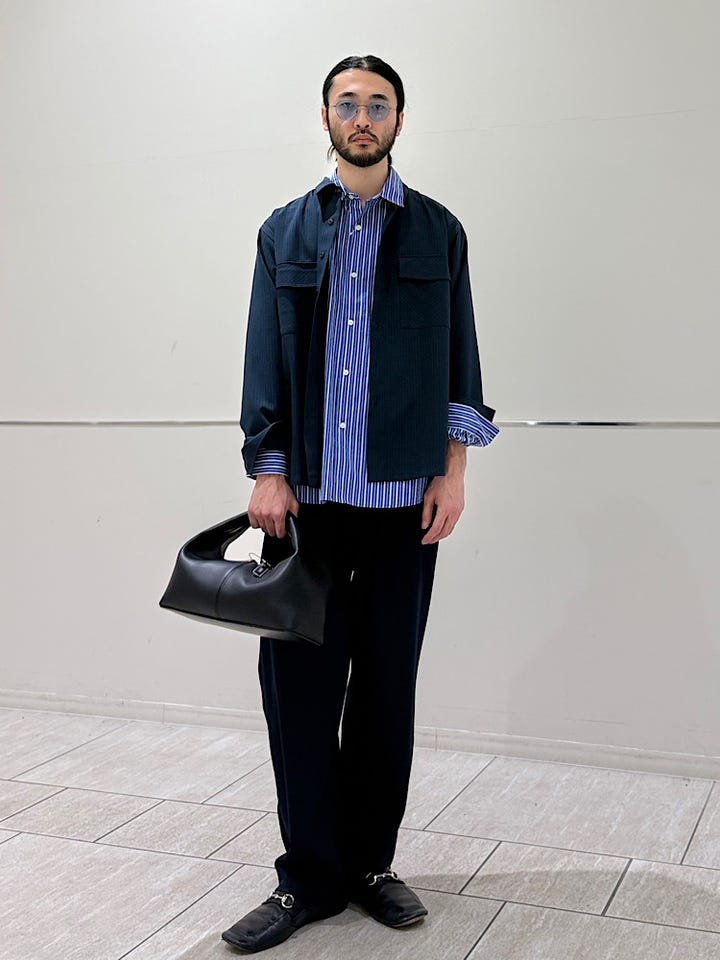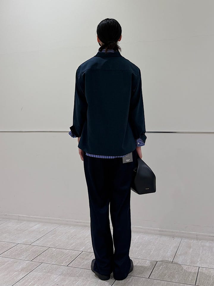 身幅がゆったりめなのでレイヤードしやすい。少し光沢のある生地。