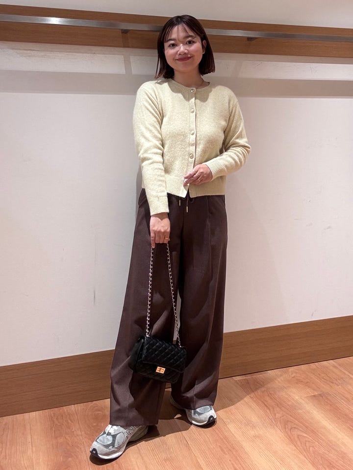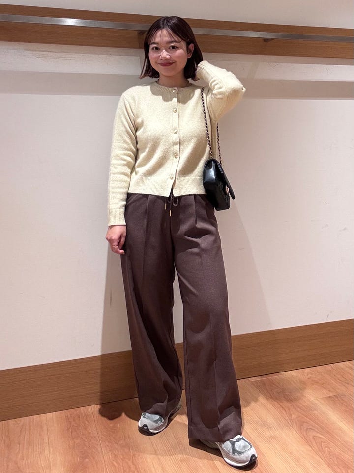 レイヤードでシャツやロゴTシャツを合わせるとまた違った印象に。カーディガン1枚で着ても上品見えします◎