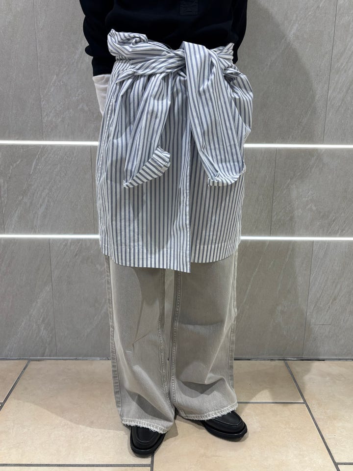 素材感・着心地:柔らかいデニム素材で、身体に馴染んでくれます。シルエットは太めですが、腰回りはすっきりと見えます。