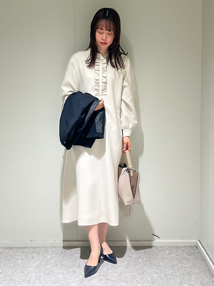 〔ONE SIZE〕《追加予約》SHIPS any:〈洗濯機可能〉ダブルクロス フリル パフ スリーブ ワンピース[NAVY BLUE]