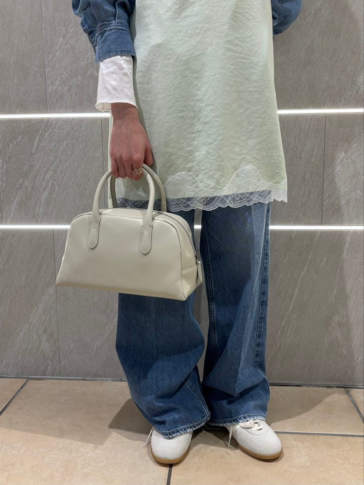 素材感・着心地:柔らかいデニム素材。ワイドシルエットで、センタープレスが入っているのでシルエットが綺麗に出てくれます。