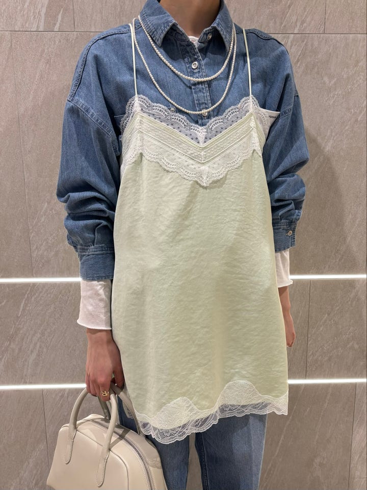 素材感・着心地:マットなサテン素材。光沢感がさりげないので、カジュアルにも合わせやすいです。ゆとりあるサイズ感なので、インナーは色々合わせられます。