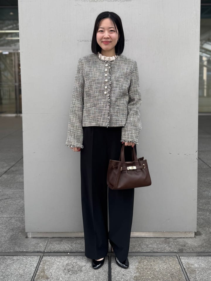 〔36〕《一部追加予約》トライスピン 杢 ツイード パール モチーフ ボタン ジャケット(セレモニー対応可)