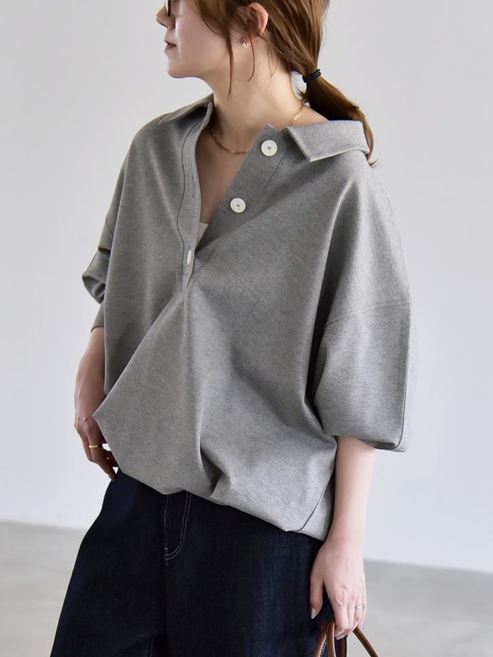 〔ONE SIZE〕《予約》quaranciel:〈洗濯機可能〉ライト ポンチ ドロスト ポロ プルオーバー