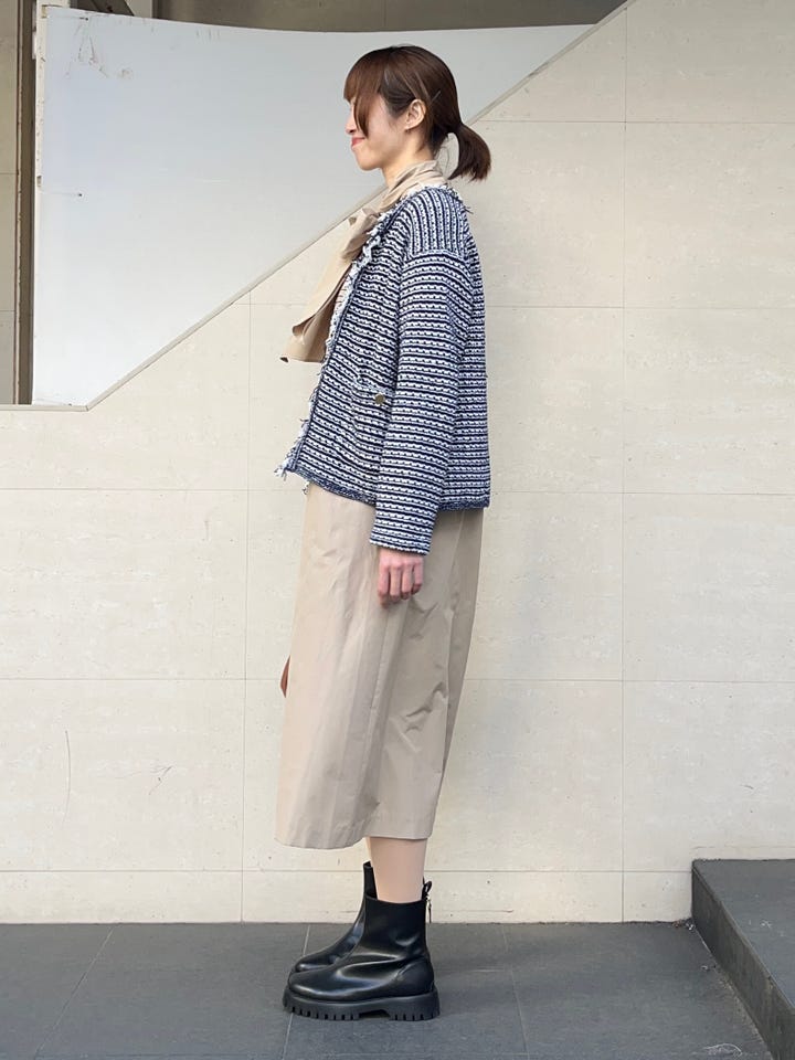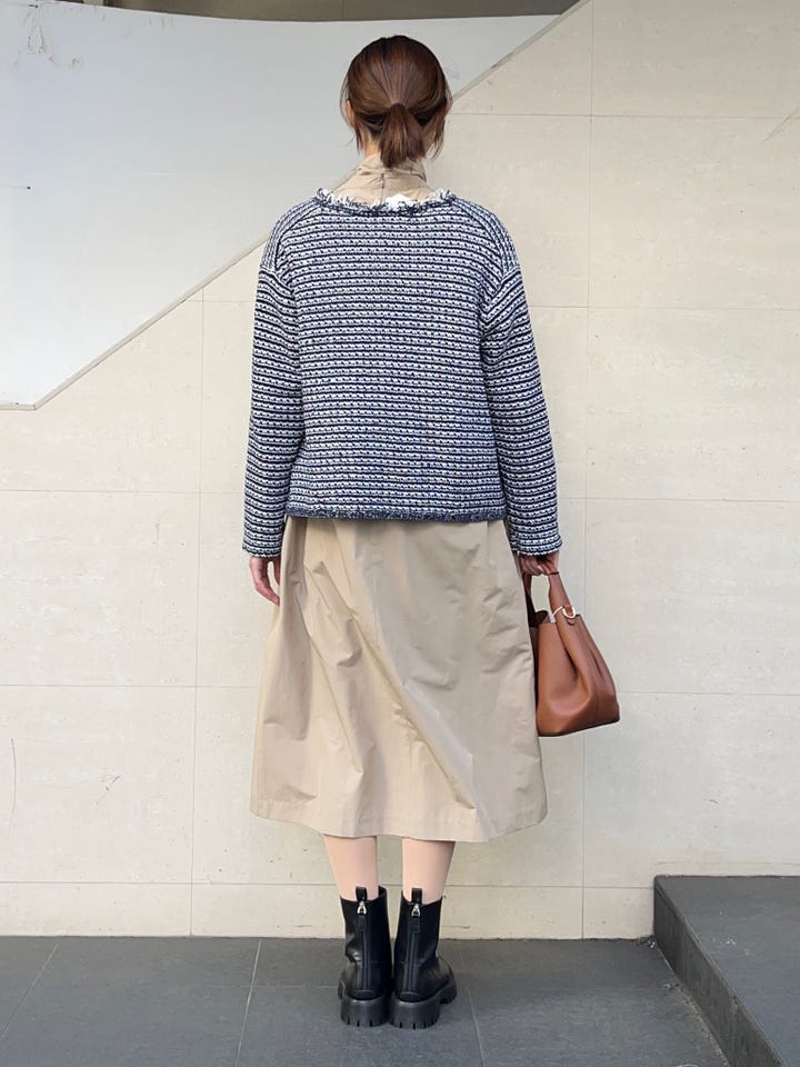 生地は張り感があります。丈は短めなので、高身長の方はブーツの合わせるのをおすすめします。