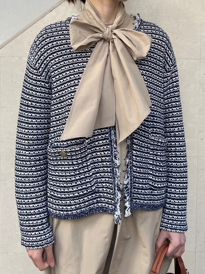 〔ONE SIZE〕SHIPS any:〈手洗い可能〉ツイード ライク フリンジ ニット ジャケット カーディガン