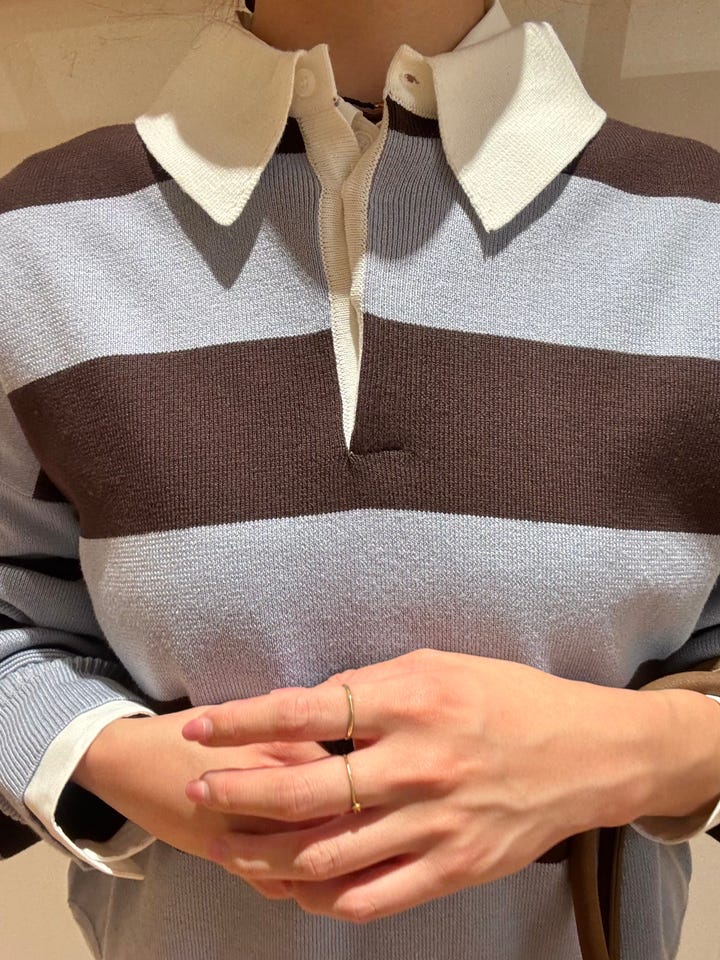 配色が可愛い目を引くニットです!
