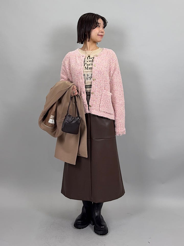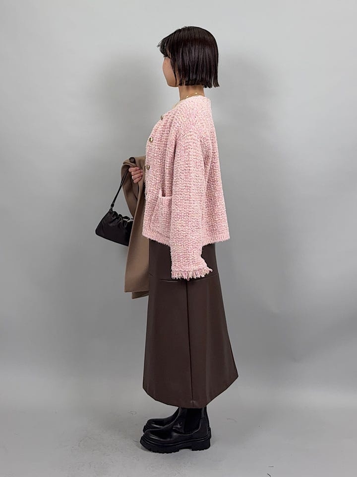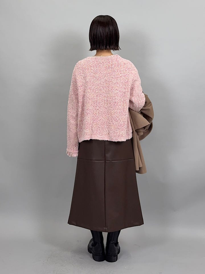 ざっくりした素材感。やわらかく伸縮性があるので着心地がいいです◎コンパクトなのでAラインスカートでもすっきり着られました。カジュアルからキレイめまで幅広く合わせていただけるデザインです。