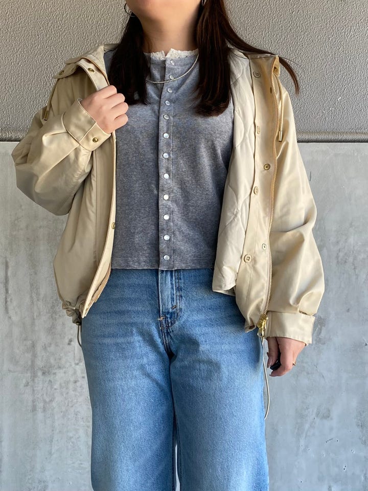 着心地:春に大活躍するマウンテンパーカーです!キルトライナーが取り外しできるので温度調節も可能。ゆったりサイズですが裾が絞れるようになっているので、ボリューム気にせず着られます!撥水加工、手洗い可能なのも嬉しいポイントです!